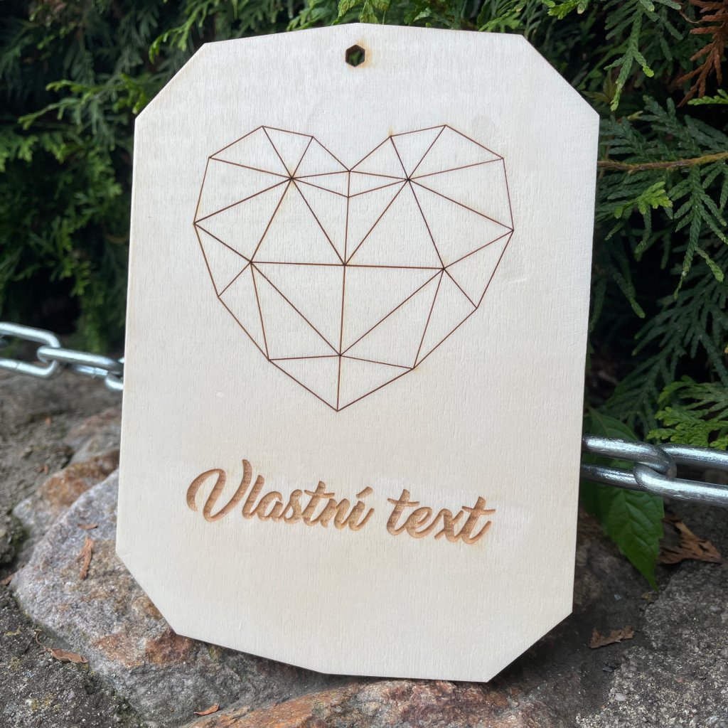 Obraz srdce z polygonů s vlastním textem na přání. Vhodný k pověšení na zeď. Text, který si přejete vygravírovat napište do poznámky u produktu, pokud si přejete objednat více kusů s rozdílnými texty na přání, tak prosíme o vložení produktu na přání do košíku jednotlivě.